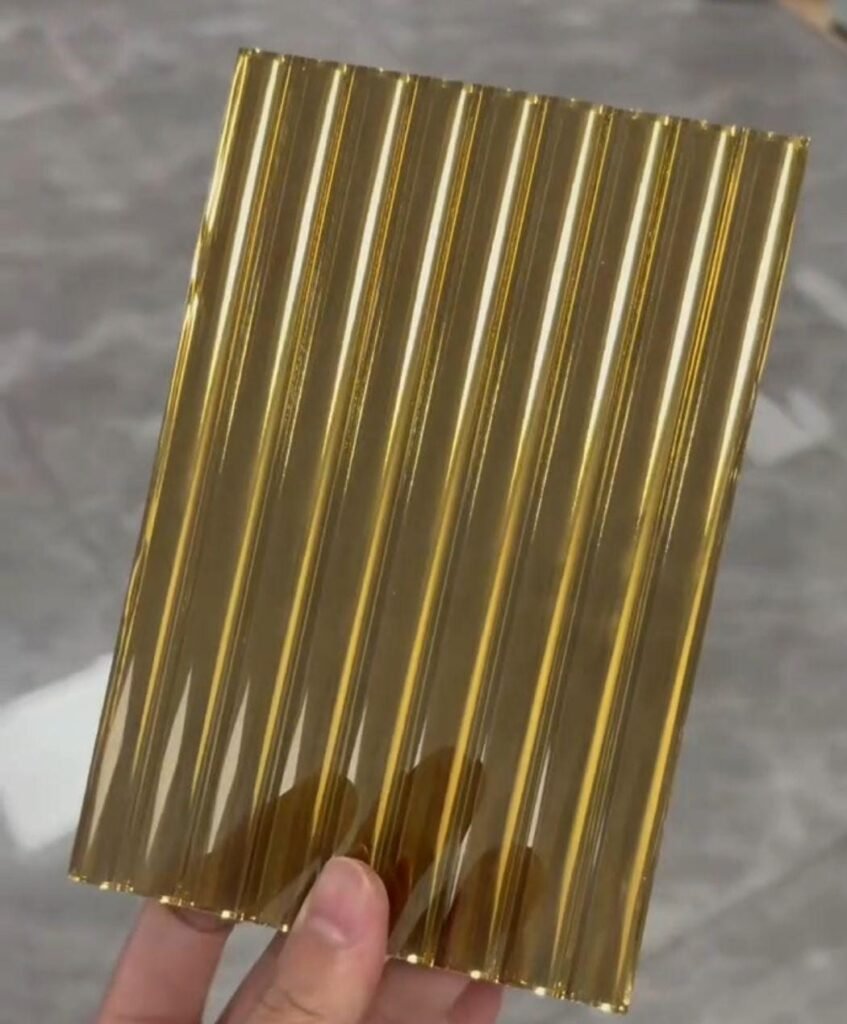 Premium 5mm golden fluted imported glass for luxury partitions, wardrobes, and decorative panels. Adds a warm golden tint with elegant fluted texture, offering soft privacy while enhancing interior aesthetics. Durable, easy to maintain, and ideal for premium interior designs.