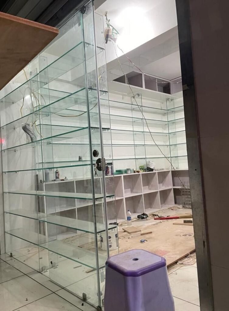Strong and stylish glass racks for showrooms, kitchens, and display areas. Custom size shelves with premium hardware fittings for durability and elegant presentation.